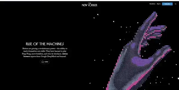 The New Yorker kombinuje istraživačko novinarstvo sa kulturnim komentarima i satirom. Minimalistički dizajn omogućava da sadržaj dođe u prvi plan — od aktuelnih vesti do kultnih karikatura.