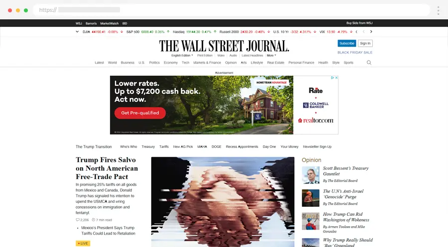 The Wall Street Journal je pouzdan izvor globalnih vesti i poslovnih analiza. Profesionalan dizajn prati detaljne izveštaje i tržišne informacije.