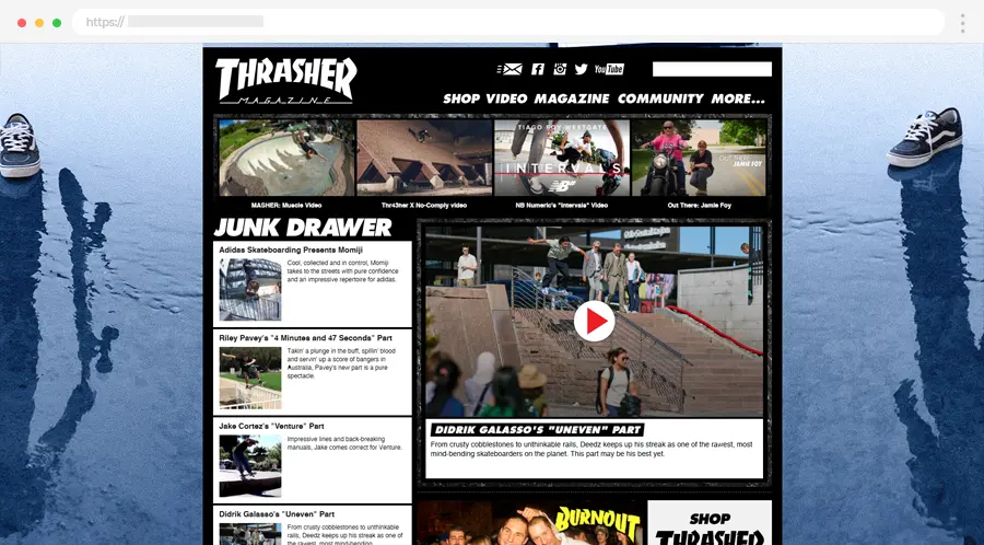 Thrasher Magazine je i dalje vodeća destinacija za fanove skejtbordinga i ulične kulture. Donosi autentičnu kombinaciju video-sadržaja, intervjua i članaka koji prenose energiju skejt scene.
