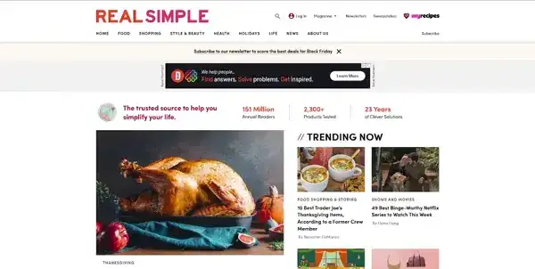 Real Simple nudi praktična rešenja za svakodnevne izazove — od organizacije doma do pripreme obroka. Smiren dizajn olakšava snalaženje kroz savete i vodiče.