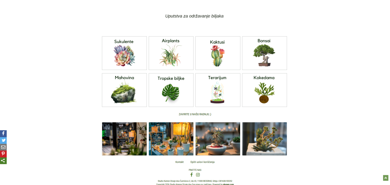 Tako je. Vredno smo radili na proširenju asortimana. Sada imamo razne aranžmane od sukulenata, kaktusa, vazdušnih biljaka. Novost u ponudi su tzv. „uradi sam" paketi. Tačnije, tri paketa. Unutra dobijate sve što vam je potrebno da sami napravite jedan mali, ali savršen aranžman koji unosi malo spokoja u vaš život. Stoga smo im i nadenuli naziv „antistres paketi".
