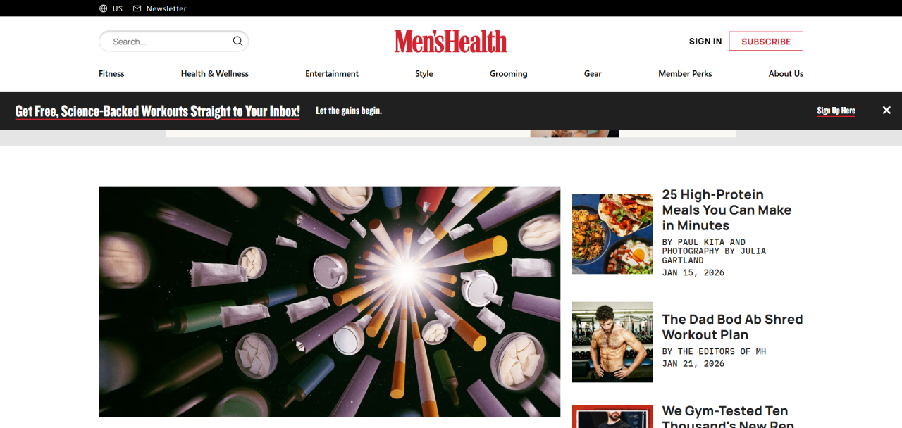 Men's Health pruža stručne savete o fitnesu, zdravlju i životnom stilu namenjene muškarcima. Dinamičan dizajn savršeno prati aktivan i wellness sadržaj.