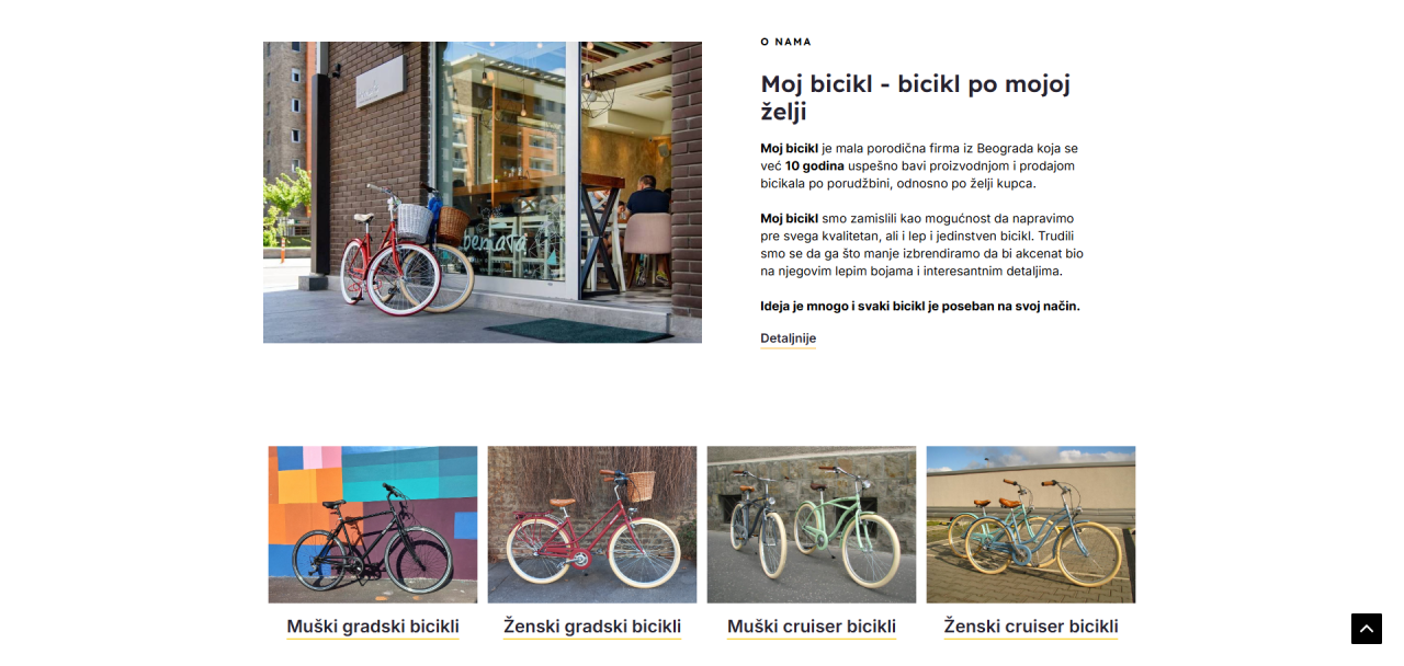 Jedan od odličnih primera kako mali biznis može da koristi web sajt da predstavi svoju jedinstvenu ponudu i privuče kupce je beogradski brend Moj Bicikl — porodična radionica koja pravi bicikle po meri i želji kupaca.